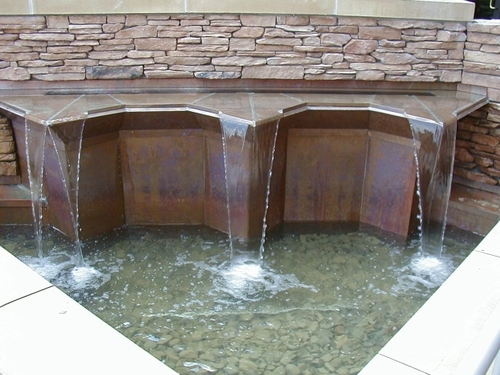 Falling Rock, a new hotel built on the golf course Mystic Rock, required an angled standing seam roof on the guard house at the entrance, and a custom fabricated copper application on a water fountain adjoining the hotels infinity pool.